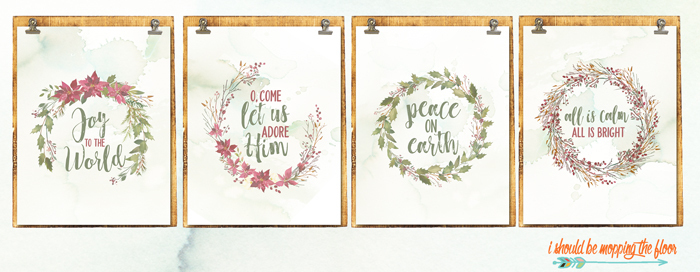 These four 8x10 Watercolor Christmas Printables are a lovely addition to any holiday decor. Each wreath print is styled with a well-known Christmas saying or verse. Download, print, trim, and frame.