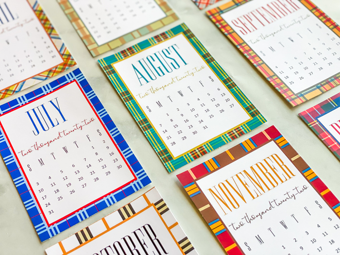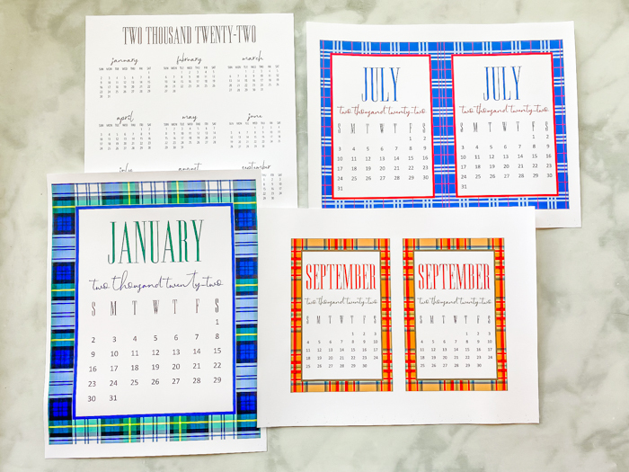 Big bundle of 2022 Plaid Calendar Printables (3 sizes, 2 formats); includes calendar-at-a-glance, too.