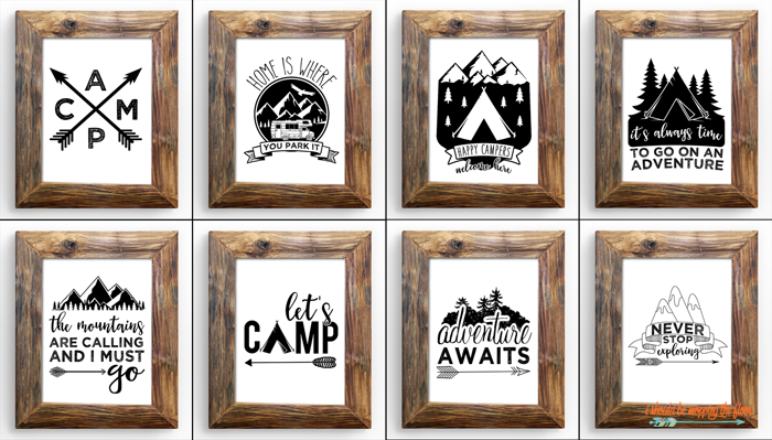 These eight kitschy black and white printables are all about CAMPING and ADVENTURE! They are available in 8x10" printables and (NEW!) 5x7 JPEG prints, as well...just download, print, and frame. Perfect for an RV or adventurous lifestyle! And even super cute in a kid's bedroom.