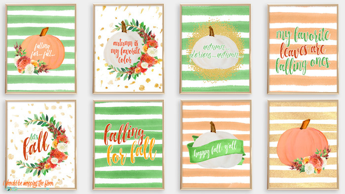 These eight fun, stripey, and preppy-feeling fall printables are great to add a touch of whimsy and pop of color to your fall decor. They're all sized at 8x10" printables...ready to print and frame. Please note that these are digital files...you may print as many as you like for personal use only. For commercial licensing, please email kristi@ishouldbemoppingthefloor.com