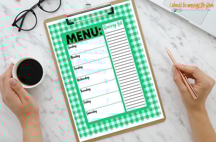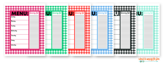 This combined menu planner and grocery list printable is available in six happy gingham colors. You can download one or all of them with this purchase. For personal use only.