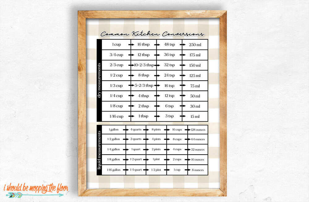 This Natural Checked Kitchen Conversion Chart is a digital download that's perfect to print and frame for your kitchen (or attach to the inside of the cupboard). Remember: this is a digital file (you won't receive a physical product). Feel free to download and print as many as you like...even as gifts!
