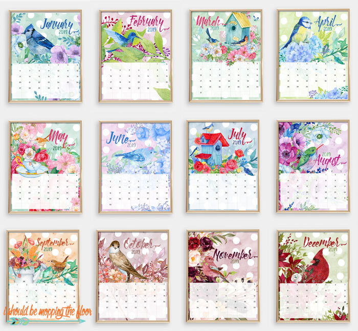 The 2019 Printable Watercolor Birds and Blooms Calendar is for all the bird (and flower!) lovers out there. This bundle includes a bonus calendar-at-a-glance, too. Each page has gorgeous, seasonal, watercolor florals and birds with a calendar that can be used for simple planning. There are 13 pages total...all sized at 8x10, but print on a letter sized page. These are perfect for framing and gifting. Download yours to get ready for 2019. May it be your best year, yet.